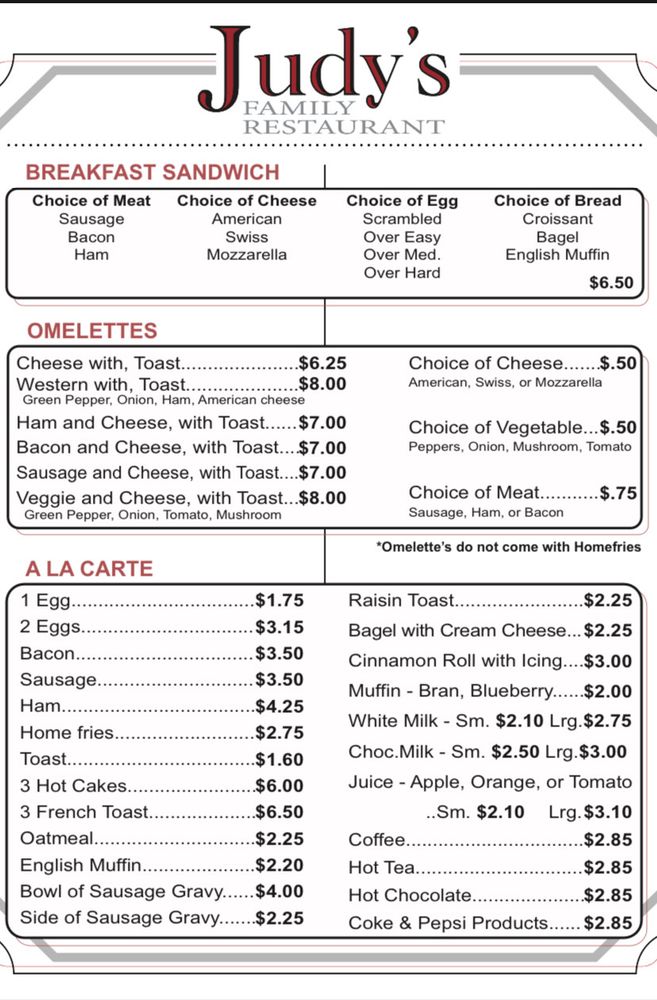 Whether you’re stopping by for a quick bite or enjoying a leisurely meal, Judy's Family Restaurant always leaves you feeling satisfied and happy. Don’t miss out on the culinary delight that embodies the spirit of home-cooked meals!